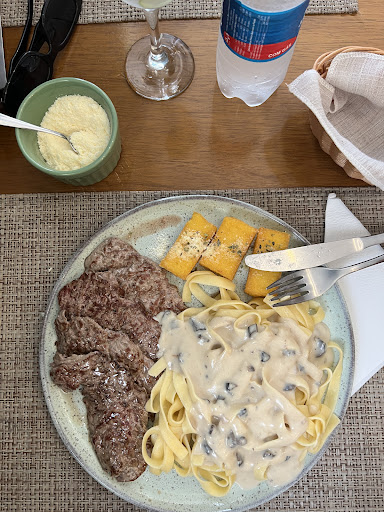 Read moreComi com minha esposa em um final de semana ao meio dia, pedimos massa e filé mignon… a massa estava boa excelente, polenta e pão excelentes também, porém pedimos filé mignon e veio qualquer outro corte menos filé mignon… o bife estava fino batido ( na máquina ou batido a martelo para quebrar as fibras da carne) eu acredito que o filé mignon que pedimos não era filé e sim uma carne de segunda “maquiada”, sugiro ao chefe que reveja o preparo do filé mignon. Me senti enganado por pedir um filé mignon e ser servido com carne...