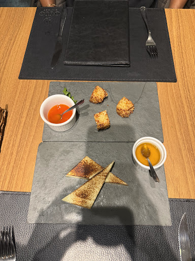 O início do atendimento foi bom, com as entradas servidas rapidamente. O queijo coalho não tinha diferencial (apenas maçaricado por cima), mas o mel trufado era ótimo. O problema começou no prato principal: a espera foi de mais de 1h, a ponto de vermos clientes de outras mesas desistirem e irem embora. Além disso, houve desencontro no serviço – meu prato foi o último a chegar, com bastante diferença em relação aos demais da mesa.