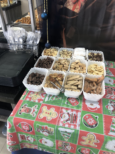A disposição dos produtos na vitrine da confeitaria chama a atenção pela estética: doces visualmente bem executados, com bom acabamento e variedade suficiente para agradar diferentes paladares. Não houve degustação no momento da visita, mas a apresentação sugere um cuidado técnico apurado na finalização. Tem um serf-service no local.
