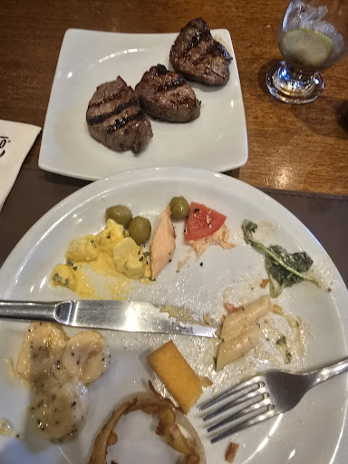 Read moreComida boa, mas não justifica o valor, de forma alguma. O rodízio, havia intervalo de 10 a 15 minutos entre uma massa e outra que passava por ali (3 tipos). Buffet simples, só saladas. Não ousei o rodízio de carnes (escolhi apenas 1 corte). Assédio dos garçons é muito grande na mesa, se vc distrai um segundo, eles abastecem seu copo com a bebida, e estragam ali o seu blend que com limão e gelo que estava no ponto certo. Ergui a carne do prato e instantaneamente levaram o prato onde eu ainda iria pegar o caldo da carne. Precisei ir ao toilette, ao voltar minha sobremesa e minha bebida, ambos pela metade haviam sido recolhidos da mesa. Fui até o buffet e removeram da mesa o prato que ainda haviam anéis de cebola que eu estava comendo. O rodízio ali não é tipo churrascaria, de espeto corrido, só pra avisar, são cortes grelhados, ok até. O grande problema é o assédio à mesa e o valor desproporcional, onde não vi grande...
