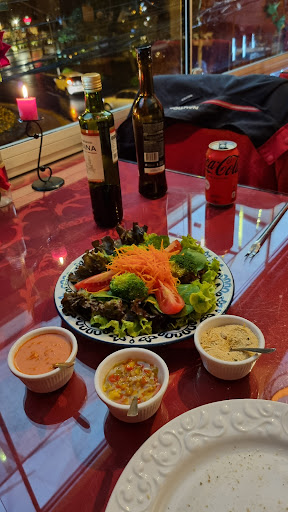Read moreO lugar é pequeno. Uma escada grande(sem outro acesso), mas com uma bonita Vista. Primeiramente já começo dizendo que marquei com a empresa Telch de me buscarem às 19:30 e alteraram para 19hs, muito cedo para mim e tb tive q alterar planos… o que parecia ser alguma combinação com o restaurante, que tem serviço de transporte e provavelmente iriam buscar outras pessoas. Chegando no restaurante, não tinha Ninguém! NENHUM CLIENTE! VAZIO mesmo! Ninguém além de mim e da minha mãe. Os próximos clientes demoraram um pouco para chegar e até lá foi uma mistura de tédio com o atendente, que tb é gerente, garçom, faz tudo..ficar tentando trazer tudo rápido e a gente tentando desacelerar. Bom, a comida estava razoável…certamente já comi sequências melhores, mas a empresa já havia me alertado que era uma coisa mais simples e nesse quesito foi ok. Estava gostoso razoável. A 1a sequência tinha apenas polenta, pão( q nem estava muito novo),cenoura e batata…talvez na intenção de agradar aos veganos, mas ao meu ver era totalmente desnecessária e ruim a escolha. O queijo eu realmente não gostei nem do sabor, nem da consistência. As sequências de carnes e frutas foram boas e com muitas variedades, só não me senti tão maravilhada com o sabor dos chocolates. Uma coisa que me aborreceu foi a questão de cobrar 10% sobre serviço do músico e 10 %sobre o valor que eu já tinha contratado na empresa e claramente combinado que eu só pagaria valores sobre bebidas e outras despesas pessoais. Eu relatei de forma amigável que não gostaria de pagar o valor e mesmo tendo razão o atendente não acolheu bem e, sendo assim, paguei o total do valor cobrado, mas saí de lá com uma impressão não tão boa da noite e do lugar. Deixo aqui meu relato para quem sabe melhorar o...