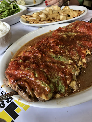 esse é o meu lugar preferido de caxias. minha família daqui me apresentou e foi amor à primeria garfada. eles costumam pedir sempre a mesma coisa de cada restaurante daqui. um é pra xis, outro é pra milanesa, e esse é o spot do baurú (nesse caso diferente de porto alegre, que é um sanduíche). num ambiente simples e com a cara de uma cantina de família, chega a saladinha de radici com bacon, pãozinho pra "tchotchar" (mergulhar) no molho, uma salada de batata perfeita e uma porção de fritas douradona como eu amo, tudo pra acompanhar o protagonista da mesa: um bife gigante de filé com presunto e muito queijo, coberto com molho de tomate refogado e um caldinho verde feito com temperos frescos. uma combinação saborosa e suculenta. apesar do preço salgadinho e dos acompanhamentos não estarem inclusos e nem terem reposição, é um almoço de domingo ideal pra encher a...