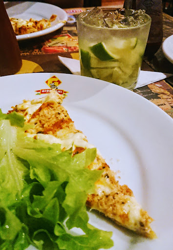 Right after getting your sit they serve you a big bowl of green salad before the pizza coming (and always replace it when finished). Various and tasty flavors of a thin-crust pizza. Waiters don't stop serving you until you're nearly exploding. Cozy place, beautiful people and a great interior decoration. Wonderful wine options, many produced in regional wineries. It was a delicious surprise. Fair...