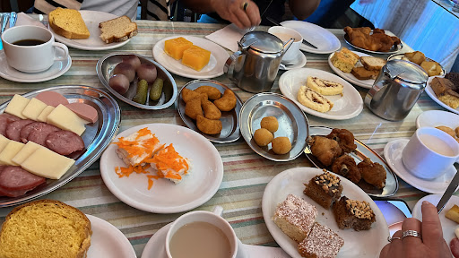 Tudo começou quando chegamos no local e simplesmente ninguém nos atendeu ou nos guiou a uma mesa, a grande maioria dos garçons passavam e se quer se importavam. Achamos uma mesa em um canto e sentamos, logo veio um dos garçons (acho que o mais gentil de todos eles) e falou sobre o rodízio do tal “café colonial”, concordamos e começaram a trazer as comidas. Primeiro que chegou um prato de frios e pães e ali eu já percebi o quão ruim seria. Os pães claramente velhos e os frios muito estranhos de aparência. Depois chegou os “doces”, bolos claramente que não eram de hoje e secos e umas bolachas que pareciam pedras de TÃO duras. Logo em seguida veio salgadinhos fritos que sinceramente nem sei o que dizer que pareciam, linguiças estranhas e uns pepinos e cebola em conserva com a cara de tão velho que já não tava aguentando mais sair de mesa em mesa. Pedimos um “chocolate quente” pois fazia parte do rodízio e CLARAMENTE era leite com nescau e quente apenas. Eu e minha namorada provamos algumas coisas mas não conseguimos terminar nada até o final, as aparências HORRÍVEIS. Deixamos tudo. Tudo mesmo. Não tivemos nem coragem de comer outras coisas, não valia nossa saúde.