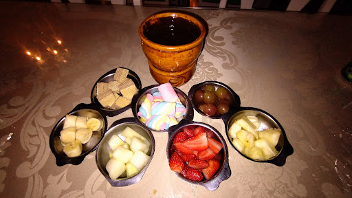 Read moreFondue e atendimento péssimos! Estivemos no dia 01.10 (dia sem movimento, sem qualquer evento especial). Inocentemente pensamos que um fondue na rua principal não poderia ser ruim. O local é bonito e parecia aconchegante. Contudo, nos colocaram numa mesa sem aquecedor. Quando finalmente ligaram o aquecedor, ficou quente demais. Pedimos pra arrumar novamente, sem sucesso (desistimos de pedir que arrumassem e seguimos com um lado do corpo bem quente). Escolhemos a sequência de fondue mais cara, a qual no dia estava em promoção. Dizia fondue de 3 queijos, mas eram os três misturados na panelinha. O gosto muito ruim, extremamente temperado e forte. Além disso, esfriava muito rápido e virava uma cola dura. Pedimos para trocar 3 vezes e num determinado momento ficamos esperando: sem carne, sem queijo e sem acompanhamento. Quando repuseram o fondue do queijo o fogo estava muito forte e ao chegar os acompanhamentos não dava para pegar. Resultado: mais espera. Pra vcs entenderem o quão ruim o queijo era, desistimos dele e de todos os acompanhamentos e só ficamos assando as carnes na pedra. Para não ser injusta, o de chocolate era bom, mas só. Os acompanhamentos eram bons, mas demorava demais pra virem. Quando vinha era um pratinho de sobremesa com 4 morangos, 4 uvinhas, enfim, parecia que era pra poupar mesmo e nos deixar esperando. E se não bastasse tudo isso, tivemos que pagar couvert para um cantor q não sabia cantar. Deplorável! Enfim, nossa mesa, entre 4, gastou um total de R$520,00, mas foi a primeira e última. Não voltaremos e não...