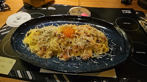 Read moreComeçou com "nossa versão de carbonara"... estranho, mas ok, estava realmente boa. Já a polenta, veio empelotada e mal cozida e o ragu de cordeiro veio frio. Sei que fui com expectativa alta, mas é o mínimo que se espera de um chef renomado. Aliás, já tive outra experiência ruim com ele. Entretanto, o que decepcionou mesmo foi o "duelo de vinhos", motivo específico pelo qual fui ao local. A ideia é servir quatro vinhos às cegas e que o cliente escolha os dois melhores de um lado e do outro, para depois escolher um finalista. Dois do novo e dois do velho mundo. Numa degustação às cegas, o MÍNIMO que se espera é CONFIANÇA! Acontece que recebi o mesmo vinho em duas das quatro taças. O mesmo cocorreu com minha esposa. Deram os dois chilenos para ela e os dois nacionais para mim. Não tiveram o mínimo de cuidado para conferirem os vinhos que estavam servindo. Ok, nos deram os vinhos diferentes, mas só depois de nós descobrirmos o erro. Compramos uma experiência que não foi entregue. A ideia é super boa, mas não poder confiar que o serviço será bem executado causou decepção. Se for fazer o experimento no...