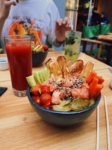 Read moreO lugar é agradável. Aspecto limpo, atendimento gentil, espaço adequado entre as mesas. A área externa é ventilada e abrigada da chuva, tem uma solução discreta e inteligente com plantas para separar da avenida que passa em frente. A playlist precisa ser ajustada, não estava adequada para um almoço. Outra coisa que precisa passar por revisão com certa urgência, são os procedimentos de higiene na cozinha. A esponja usada para lavar os utensílios onde os peixes são processados, deve ser descartada e EM HIPÓTESE ALGUMA usada para lavar outras coisas, como copos, por exemplo (que vejam só, ficaram com cheiro de... peixe). O preço não é baixo, mas não há problemas quando se constata que as refeições são muito bem preparadas, em porções generosas até. Acho que o lugar pode passar por ajustes e ter grande destaque pelo se menu e bom atendimento. Eventualmente voltarei para verificar como vão. ATUALIZAÇÃO: a pessoa responsável gentilmente respondeu à minha avaliação, em especial à questão dos copos com cheiro de peixe. Saliento que tanto eu quanto a pessoa que me acompanhava sentimos o mesmo cheiro, ao mesmo tempo, ANTES de nossos pratos chegarem (o dela, inclusive, não tinha nenhum tipo de fruto do mar). Saliento, ainda, que os copos foram substituídos por outro par de copos, também com...