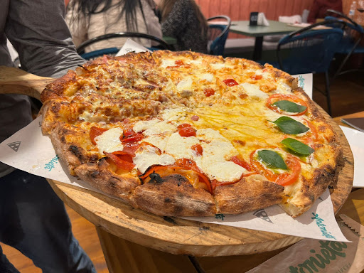 Read moreSuper recomendo! Começando pelos garçons que são super atenciosos e queridos. O espaço é lindo e tem contém um espaço externo é uma área interna climatizada. E por último a comida é muito boa e bem servida, pedimos uma burrata assada com tomate confit de entrada, muito boa, ao meu gosto poderia ter menos azeite mas isso é de pessoa pra pessoa, além disso, estávamos em 5 pessoas e a burrata é servida com 4 torradas de pão italiano, porém, poderiam ter acrescentado uma torrada a mais. Por fim, as pizzas tem uma ampla variedade de sabores, pedimos uma pizza gg com 16 pedaços e 4 sabores: calabresa com bacon, cogumelado, tomate seco e presunto Parma com rúcula, todas muitos saborosas é bem recheadas , mas o ponto chave foi a pizza doce de charme, sem explicação, melhor pizza...