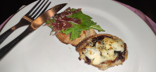 A bruschetta de cebola caramelizada estava perfeita, melhor item pedido, já de presunto de parma com rúcula no cardápio vem informando que ela tem um glaze de vinagre balsâmico que estava imperceptível, havia um toque de vinagre realmente, mas não se dá para chamar de glaze. Um glaze obrigatoriamente tem por base mel ou algo caramelizado que traz consigo dulçor, o que não tinha. Mas tudo bem.