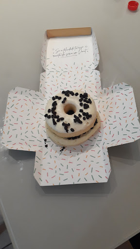 Read moreOs donuts são bons, pedi o Homer que estava ótimo e meu noivo pediu 4 leites, que estava com a massa quase crua e o recheio ruim, parece que não foi cozido o suficiente para recheio. O milk shake de morango é muito bom e o chá gelado é normal. Chegamos no horário que abriu e, mesmo assim, demorou mais de 30min pra preparar e entregar nosso pedido, mesmo que os donuts sejam pré-preparados, o que fortaleceu o ponto negativo do donut de 4 leites, por estar com recheio quente, mal cozido e a massa crua. O ambiente é bonito, mas o atendimento não condiz muito com tudo isso, podendo melhorar um pouco mais no quesito simpatia e em deixar os clientes à vontade. Eu provaria novamente, em uma próxima ida à Chapecó, pra confirmar a...