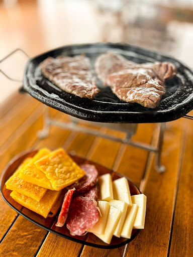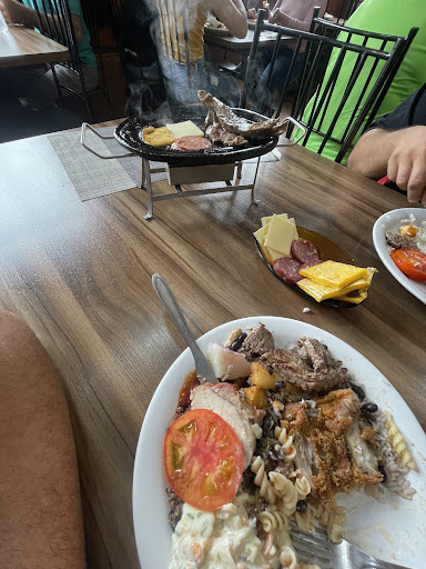Almoço livre, com arroz, feijão, macarrão, saladas e costelão. Almoço muito bom e completo e além disso fogareiro na mesa com bifes, salame, queijo e polenta a vontade. Para finalizar sobremesas como pudim, sorvete, sagu e etc. Tudo isso incluso no almoço livre, que está custando 25 reais (fui em um sábado, talvez o preço seja diferente durante a semana). Também oferecem Coca-cola 1L na garrafa de vidro, opção muito boa quando se está em família ou amigos. Atendimento muito bom e...
