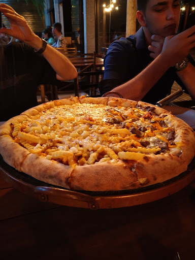 Quando visitei o restaurante, experimentei diversas opções de pratos, incluindo pizzas e porções. Achei a comida muito saborosa e bem preparada, as pizzas tinham uma massa fina e crocante, e os sabores eram equilibrados e agradáveis ao paladar. As porções eram bem saborosas e com uma variedade de opções, ideais para compartilhar com família ou amigos.