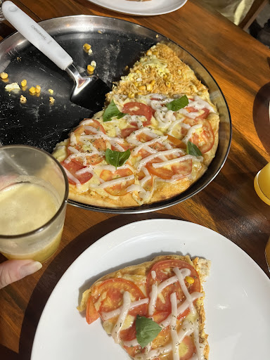 Não tenho muita foto para postar, pois não deu tempo rs. Estive em Corrente a passeio, fui conhecer a pizzaria e me surpreendi. Pizza saborosa, bem preparada e com ingredientes frescos. A massa é super leve, vc come bastante sem ficar pesado, tudo muito saboroso. Pedi tbm um suco de laranja natural que estava delicioso. Ambiente limpo e familiar, destaque para a tesourinha escolar para abrir os sachês de ketchup e afins, não precisando levar o sachê até a boca, o atendimento foi excelente, preço justo, a pizza chegou rapidinho, pedimos metade caipira e metade marguerita. Foi uma das melhores pizza de marguerita que já comi, realmente...