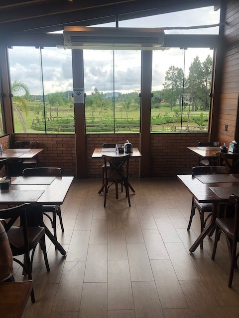 O cliente acessa o restaurante diretamente no primeiro salão, que possui TV, mesas, janelas com vista para o lado de fora e ambiente climatizado, um diferencial importante. Ao atravessar esta primeira área o cliente chega no balcão onde pode fazer seu pedido e tem acesso aos banheiros que, no dia em que visitei o local, estavam limpos e bem cuidados.