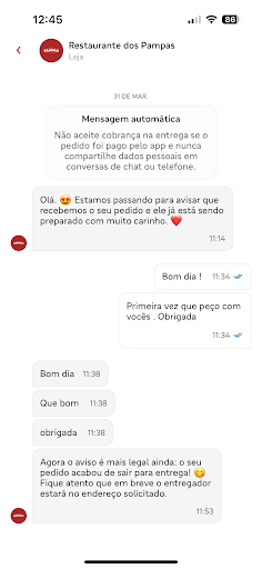 Read moreRestaurante não tem respeito com clientes que pedem comida para seu almoço . Confirmam pedidos que foram feitos com antecedência no IFood , chamam cliente no chat confirmando e avisando que está sendo preparado , dão saída no pedido para entrega e depois cancelam deixando cliente sem o pedido encima do horário de entrega . Se não conseguem atender demanda de pedidos no IFood tirem esse restaurante de lá e não façam os clientes que fazem pedido de comida para terem o...