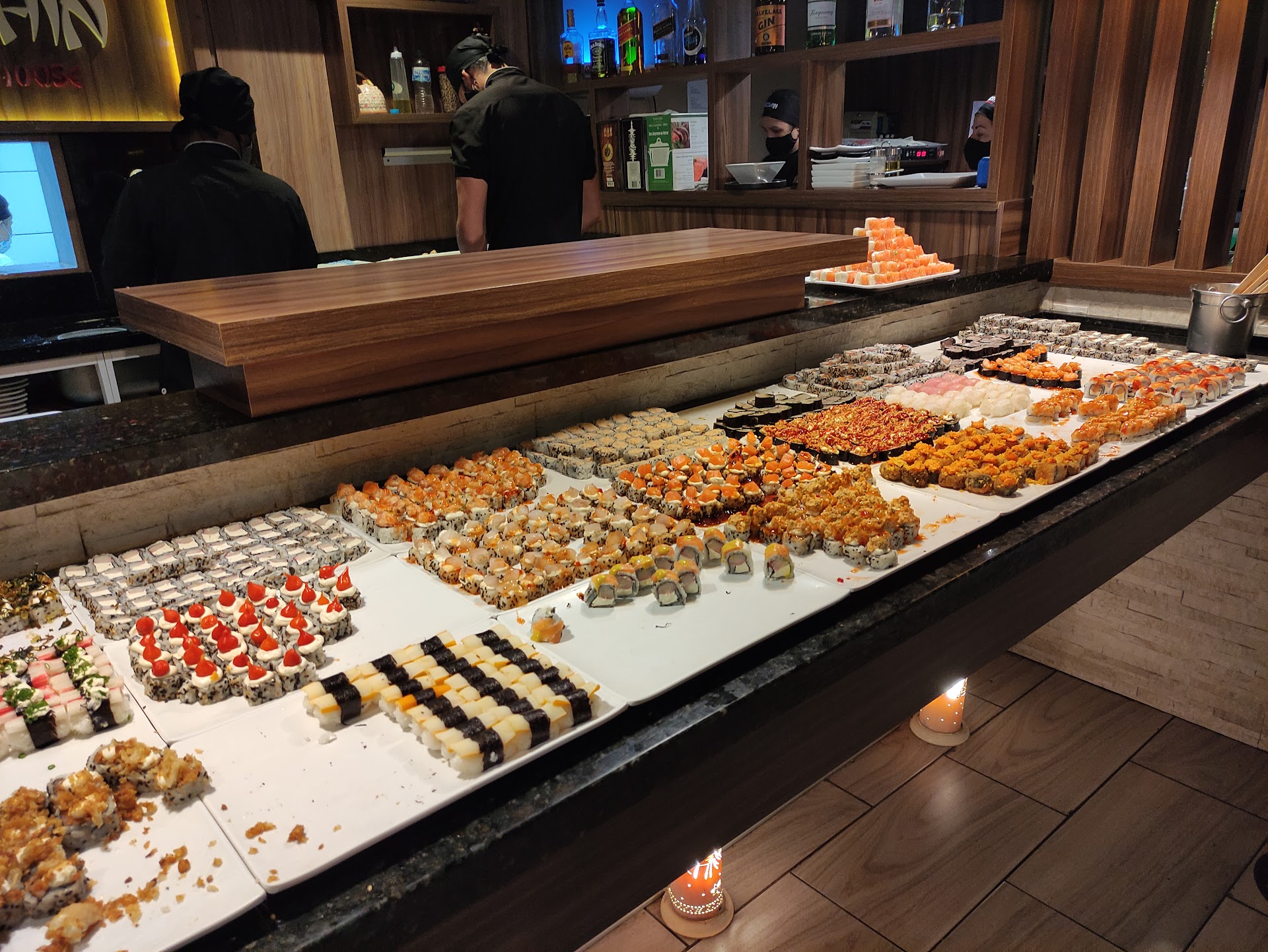 Read moreO local é de fácil acesso com estacionamento próprio e bem amplo, o ambiente interno é bonito limpo e bem organizado, Mesas e cadeiras confortáveis e com uma boa distância entre elas. Atendimento como na maioria dos lugares, garçom cego, a atendente do caixa não sabe dizer boa noite e a conta não vem na messa. Deveriam aprender com o tio do estacionamento que e super educado. A comida e simples, sem ingredientes de primeira e com pouca criatividade, o shari e bem feito mas com pouco tempero, muito Kani Kama, de peixe tinha salmão pouco mas tinha, tilápia, mas o pior de todos foi atum de latinha. Nas frituras, não tinha camarão, lula não foi limpa antes de empanar, me recuso a comer frango empanado, o melhor foi o tempurá de legumes. Chopp da The Nouse Mustache estava perfeito, mas só tem esse! Caipirinha estava com gosto de limão podre, não deu de beber. Acredito que pelo valor cobrado, R$ 40 por pessoa e R$ 80 o quilo, deveria ser melhor. Essa foi minha experiência no dia 13/03/2020. Não deixe de visitá-los e tirar suas...