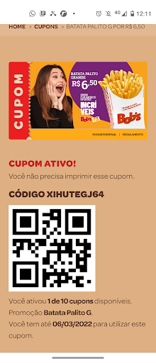 Read morePéssimo atendimento sempre falta itens como batata e outros lanches hj ativei um cupom no bobs fã qdo fui pegar a atendente me disse q a promoção encerrou, mostrei pra ela o QR code e a num a validade era até 06/03 hj é dia 03/03 ela queria cobrar 12 reais sendo q o cupom era o valor de 6,50 disse q não podia fazer nada🤡 péssimo não recomendo uma pena não ter concorrência se tivesse ia falir em menos de um mês pq eu trabalho no aeroporto e não tem opção pq se tivesse nunca mais compraria nessa loja promoção no site precisa ser honrada vcs são uma...