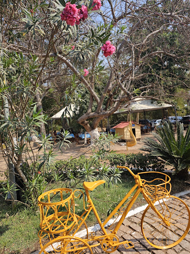 Não conhecia o lugar. Ambiente bem tranquilo, um sítio amplo e arborizado, com várias malocas onde ficam as mesas no ambiente externo.