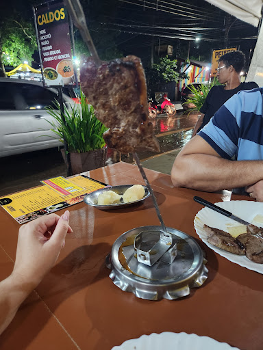 Logo de cara na chegada da cidade é quase sempre o local de início pra quem vai conhecer a Chapada dos Guimaraes. A praça de alimentação te transporta automaticamente para um novo local. É a experiência que todos esperam em uma viagem. O local é limpo, muito amplo, organizado, as pessoas são muito educadas, você sente um clima de local tranquilo e seguro. As opções de refeições não são um problema. São próximas uma a outra. Basta estacionar e sair pra escolher o que melhor te atende. Nos experimentamos uma picanha na chapa......