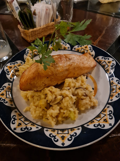 Read moreEstávamos em 9 pessoas na mesa, o local é agradável realmente. Drinks maravilhosos, pedi de frutas vermelhas e outro de frutas verdes, uma delícia. Ocorreu de termos que pedir a mesma coisa mais de uma vez por não ter vindo, entretanto, garçons e garçonetes atenciosos e educados. Na hora do jantar, dentre os 8 pratos pedidos, o meu foi Salmão ao risoto de alho poro e cogumelos, que infelizmente não veio NADA bom, o risoto não tinha nada de risoto, arroz seco e meio papa, sem gosto nenhum, o salmão, sabe aquele gosto forte de peixe sem tempero? Ruim, bem ruim. Chamamos 2 pessoas para informar que o prato não tinha vindo bem preparado, sequer recebemos um pedido de desculpas. Esse prato foi o mais caro pedido R$ 89,00..Chateada pela forma que lidaram com...