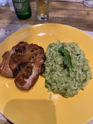 Read moreConhecemos hoje o restaurante Galeto Cuiabano. O lugar é muito aconchegante, cheio de plantas e decoração regional, o atendimento é ótimo. A proprietária nos falou da quermesse que vem acontecendo ao longo dos últimos 4 anos no dia da amizade (20/07) e já estamos ansiosos rsrs...Começamos experimentando a porção de pastéis de carne de panela (mista com pastéis de queijo pra mim) acompanhada de uma geleia de pimenta e uma cerveja bem gelada. Uma delícia!! Os pastéis sequinhos, deliciosos. Para o almoço pedi o Galeto com Risoto de Brócolis e Bacon crocante para mim e Luis pediu o prato que leva o nome da casa. O Galeto com risoto estava maravilhoso. Um prato suculento, com muito sabor e apresentação linda!! Eu amei. Com certeza...