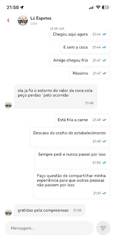 Read moreTodas as vezes que peço espeto de medalhão de frango, eu peço bem assado porém o frango vai cozido e as vezes cru, bacon crú .. ontem fomos comer lá, e daí a surpresa rsrs pedi o medalhão de frango bem assado e meu esposo o contra filé bem assado e novamente veio cru os 2 e a batata frita veio encharca e algumas queimadas reclamei mas paguei a conta a conta do mesmo jeito sobrando espetos ambas as partes... Não sei oque acontece ou aconteceu com o espeto da lu. Já foram ótimos, hoje em dia na minha opinião...