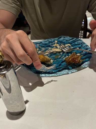 They noticed we hadn't touched our plates and asked if they could serve something different. We both said no, but they insisted on serving the fish - pîntada - to compensate (and on THAT I will comment later). They also served in the meantime some starter which we did not ask for and did not like either, not good at all, but i tried one piece out of respect. The pintada was OK... but again... all you could taste was garlic.