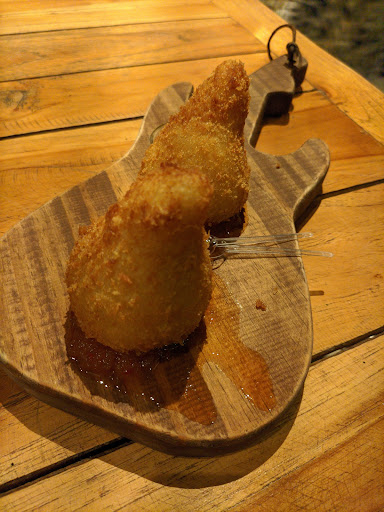 Fomos ao Rock Burger num sábado, era umas 20h e a casa ainda não estava lotada, mas encheu rápido. Já tínhamos ouvido falar que lá lotava, por isso tentamos ir cedo. Tinha uma banda de rock tocando, a gente se sentou mais pro fundo e o som não ficou tão alto. Pedimos a coxinha de costela, 2 unidades (R$19), que estava divina de gostosa. Ela vem numa caminha de geleia de pimenta, que combinou bastante com o recheio. Só pela coxinha, eu já voltaria. É muito boa mesmo. A massa desmancha na boca e a costela é super bem temperada. De hambúrguer, eu pedi um Pink Floyd (R$34), que vem com carne 160g, queijo, cebola crispy, bacon e barbecue de rapadura. Pedi sem barbecue, porque não gosto muito em hambúrguer, e eles foram bem atenciosos. Perguntaram o ponto da carne e pedimos bem passada, pois não gostamos de hambúrguer rosa no meio, sabe como? E veio certinho. Tava simplesmente maravilhoso. O tamanho é bom, a cebola tava divina e o bacon nem se fala. Eu fiquei fã de verdade. Meu noivo pediu um melt cheese bacon (R$39), que é isso que o nome já diz, mesmo: pão, muito queijo derretido, burguer de 160g e bacon picadinho. Ele também achou uma delícia, uma opção de segurança que tem o básico, pra quem não gosta de inventar moda. Todos os pratos chegaram rápido, não sei se pelo horário ou se a cozinha é sempre ágil assim. O couvert artístico era R$12 por pessoa. Pedimos uma coquinha (R$6,80) e achamos que valeu a experiência. A iluminação do local é boa. Achamos curiosa a quantidade de pedidos de delivery que saía enquanto comíamos. Inúmeros pacotes de hambúrguer e também de pizza, pois do outro lado fica a pizzaria Bravi, provavelmente do mesmo dono e que ainda queremos conhecer. No local há estacionamento com manobrista e local de parada apenas de motoboy delivery. Voltaremos com certeza. Obs: eu nem sou muito fã de hambúrguer "gourmet", mas esse é...