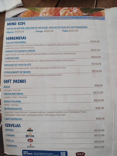 as bebidas do Icaro são as mais caras entre seus vizinhos apesar de serem da mesma família ou grupo, a menina que serviu a mesa informou que o refrigerante era de 200 e a água de 500,as a água tbem era pequena de 330, ambos 8.90, e não havia estas informações no cardápio,os preços da long neck a 15,90 mais taxa e mais couvert, o chopp a 19,90 500ml com colarinho enorme, no cardápio , onde não mencionava o pesto no grega, o tamanho das bebidas, também não mencionava o couvert artistico, dei ao atendente estas sugestões para que se tiverem interesse em corrigir será bem vindo pelos clientes, e pode salvar a vida de alguém ter a informação sobre o pesto, afinal alergias comuns como está são perigosíssima de choque anafilático.