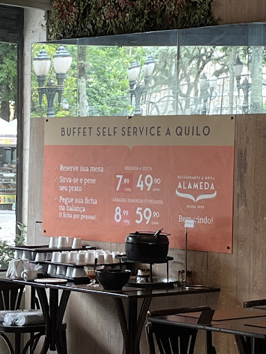 O restaurante fica de frente a praça Osório no centro de Curitiba, tem Buffet Livre de 2° a 6° no valor de R$49,90, sobremesa e bebidas fora a parte, mas devo apresentar a minha experiência neste local, bem, possui um cardápio bom para o valor apresentado, mas devo deixar minha insatisfação com o frango a milanesa e o peixe, ambos estavam secos e sem gosto, o peixe não era fresco, parecia aqueles congelados, qualidade não é a mesma de um peixe fresco, ao contrário dos restaurantes chineses de Buffet Livre até R$30 reais. Além do mais, aceita Pix, pois na comanda, possui as informações para pagamento no QRCode, mais infelizmente o caixa NÃO tem como confirmar se foi feito realmente o pagamento via Pix no banco Itaú do restaurante Alameda Grill Osorio, o cliente então é necessário apresentar o comprovante de pagamento feito no Pix no caixa, que ao meu ver, um restaurante deste porte, não poderia acontecer isso, em plena era digital, além de dar margem para erro. Deixo uma dica para o proprietário, abra uma conta digital totalmente gratuita com CNPJ da empresa como PicPay, Mercado Pago, Banco Inter, Banco C6Bank, Nubank etc... o que não falta é opção, está conta ficará exclusivamente para ser utilizada no caixa, assim o caixa pode confirmar o pagamento realizado via Pix dos clientes. Simples e fácil, é sério que ninguém pensou nisso !. Espero que em uma futura visita, sinceramente esteja resolvido a questão...