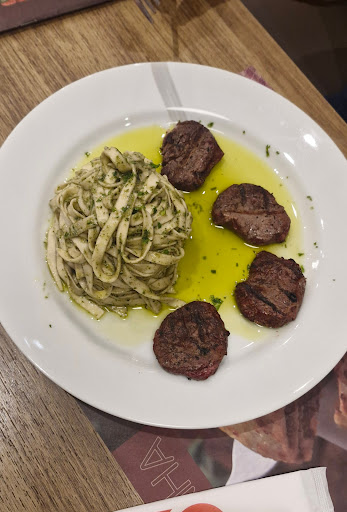 Fiquei completamente chocada (negativamente) pela massa com mignon. Grandes elogios ao fotógrafo que fez o cardápio por conseguir fazer tudo parecer apetitoso, porque realmente não tem nada a ver com o prato que chega a mesa. 47 REAIS, O PREÇO DE UM PRATO INTEIRO, por esse adicional RIDÍCULO de "medalhão de mignon", que eu duvido que sequer seja mignon mesmo, minúsculo, seco, passado, feio, sem gosto, chega a ser ofensivo. A massa também estava péssima, sem gosto, textura estranho. Molho pesto parecia mais uma lembrança distante do tal, fraco e sem gosto, quase um azeite puro E sim, eles esperam que você pague 90 REAIS por essa combinação horripilante e quantia minúscula de comida. Preciso reforçar que o Au-Au é famoso pelo HOT DOG. então recomendo ir lá para comer hot dog, que é de fato gostoso, mas o resto da grande variedade de pratos é uma experiência no mínimo decepcionante. O brownie com sorvete e calda foi a grande salvação da noite, recomendo um hot dog e um brownie de sobremesa para ter uma experiência decente aqui.