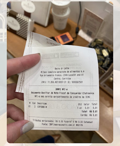 Menciono que eu já tinha tomado baccio baccio nesta unidade, além da do shopping Curitiba, Mueller e tinha sido ótimo, então achei que a experiência seria essa novamente.