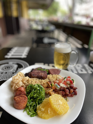 Minha experiência no local foi para apreciar a feijoada de sábado, cheguei cedo (11h45) e percebi que o maior movimento inicia por volta das 12h45. O buffet de feijoada é livre e possui os autênticos sabores desse prato típico brasileiro: feijoada só de feijão, com calabresa costelinha e defumados, com partes suínas, farofa, couve refogada, laranja, torresmo, toucinho, vinagrete, banana frita, mandioca frita e linguicinha, e caldinho de feijão para abrir o apetite com possíveis adições de tempero verde, bacon e molho de pimenta. De sobremesa oferecem um delicioso pudim de leite (tive que repetir, pois estava muito saboroso). Gostei muito do sabor de cada um dos ingredientes listados, nota-se um preparo com cuidado, e acho espetacular eles separarem as feijoadas com os diferentes ingredientes para atender as mais diferentes preferencias. O chopp é brahma e vem bem geladinho, mas o cardápio de bebidas conta com outras cervejas e drinks.