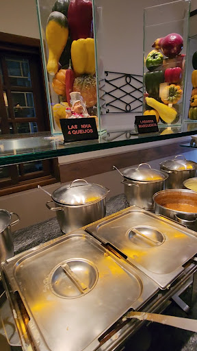 Quanto à comida, o buffet de sopa custa R$55 e oferece uma boa variedade de opções, embora a maioria seja composta por caldos. Também há massas como espaguete, penne, nhoque e ravioli entre outras massas preparadas na hora, com alguns molhos disponíveis, o que ajuda a complementar os caldos. A sopa slava estava especialmente saborosa, pois continha carne e batata, tirando a canja e a de capeletti, as demais eram caldos. Além disso, o buffet conta com algumas opções de saladas e possui uma opção de sobremesa inclusa, canjica, que particularmente não agradou o paladar de nenhuma das cinco amigas.