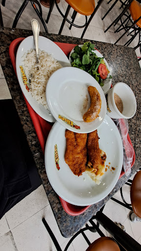 Read moreComida é OK.. não é ruim, mas ta longe de ser ótima. A carne estava bem saborosa, bem como as batatinhas que acompanharam. O preço é muito bom também, ainda mais se levado em consideração que o box está dentro do mercado municipal, no centro de Curitiba, um PF de 20 e poucos reais ta realmente em conta. A porção é pequena e deixou a desejar. O tamanho do bife é muito pequeno, deveria ser pelo menos o dobro do que veio. O atendimento é OK com todos fazendo o possível para atender os clientes, mas é demorado e vejo que as funcionárias sofrem. Não param um segundo e ainda precisam ficar ouvindo o dono o tempo todo: "Fulana, limpa essa mesa aqui".. Faz sentido contratar mais gente, pois a demanda na hora do almoço é bem alta ali. Não diria que é ruim, mas...