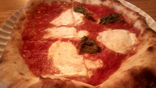 Hoje dia de saborear uma pizza bem simples, de um sabor tradicional e aqui tem bons agrados, além do ambiente um pouco diferente para uma 'pizzaria'. A aparência da pizza é bem simples, e até um pouco fraca. O queijo não fica muito esparramado e parece em pouca quantidade, o molho parece se acumular um tanto nas bordas, e a massa parece bem crocante apesar da forma não ser completamente redonda, o que dá um bom ar de algo mais rústico, agradando um pouco. O sabor é bem interessante. A massa é bem crocante e saborosa, mesmo com bordas grossas, agrada pela boa preparação e consegue segurar bem o recheio mesmo sendo bem fina. O molho é levemente ácido e levemente grosso, algo que dá uma boa quebrada no sabor e deixa até uma boa sensação, mesmo que perto da borda pareça exagerado. O queijo é bom, saboroso e fica bem na pizza, combina com o molho e a massa, formando uma boa combinação de sabores, o problema maior é não ficar muito bem distribuído, algo que deixa uma sensação de faltar recheio em boa parte da pizza. O manjericão ajuda a dar um sabor e aroma a mais, fazendo um papel leve de tempero. O lugar é bem agradável, aberto e parece ter até vários ambientes, com um atendimento bem descontraído, consegue dar um bom conforto para um lugar aparentemente mais rústico. No geral, uma pizza que tem ótimos ingredientes com uma boa mistura, mas parece falhar um pouco na montagem e preparação, o que pode deixar uma sensação um pouco desagradável, mas que vale a pena uma segunda visita para experimentar um outro sabor.