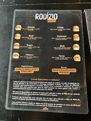Quando soubemos disso, fomos ler o QRCode e descobrimos que não apenas poderíamos ter escolhido nossos sabores de hambúrgueres - coisa que não fizemos, todos chegaram sem pedirmos - como também que havia uma taxa de R$8,00 para cada um que sobrasse na mesa. Ficamos muito assustados, pois haviam 3 bandejas cheias não solicitadas na nossa mesa. Pedimos então para falar com a gerente do local.