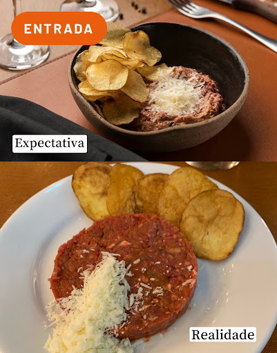 Na parede do restaurante assim está escrito: “a essência da criação, o desafio de novos cortes e o domínio do fogo nos fizeram evoluir e ter experiências inesquecíveis”. De fato, saí de lá com uma experiência inesquecível: inesquecivelmente ruim. Nunca fui tão mal tratada num estabelecimento como na noite do dia 11/08/21, próximo das 20h. Ao retirar o pedido, o garçom (queridíssimo, diga-se por sinal, o problema não foi com nenhum dos garçons) nos perguntou o ponto da carne. Estávamos em três pessoas: uma pediu a carne ponto menos e duas mal passadas (deixei bem claro que o ponto da minha carne era BEM mal passada). Quando os pratos chegaram à mesa, minha carne estava praticamente ao ponto, momento no qual avisei ao garçom que a carne não estava como eu havia pedido. O garçom levou meu prato até a cozinha e disse que era mal passada, quando ouvimos em alto e bom som alguém gritar “MAIS MAL PASSADA QUE ISSO?”, sendo que esse homem ficou discutindo com o garçom, razão pela qual fui até a janela da cozinha e expliquei a esse homem como tinha pedido minha carne, primeira vez em que ele claramente riu na minha cara. Algum tempo depois, essa pessoa veio entregar meu prato e pediu para eu cortar a carne para conferir o ponto, até aí tudo bem, mas após eu dizer que estava no ponto correto ele quis me dar uma aula sobre como a outra carne estava mal passada (não estava). Quando eu o refutei, em toda sua prepotência, disse “eu sou o chefe de cozinha, sócio-proprietário do estabelecimento” e defendeu seu suposto padrão, de maneira extremamente rude. Pedi para que ele me trouxesse o cardápio, pois lembrava que antigamente este tinha os pontos da carne bem definidos e o “ponto da perfeição” indicava uma carne “selada”, da maneira como eu havia pedido. Neste momento, outra risada debochada me foi desferida. Reclamei para o Sr. Sócio-proprietário do restaurante sobre a conduta dele, disse que me senti muito mal com aquele tratamento e que minha vontade era, realmente, a de ir embora do restaurante e uma discussão acalorada se iniciou. Por fim, quando consegui finalmente comer o prato principal, outra surpresa: o nhoque frito estava tão sem graça que ficou quase todo no prato. Mole, sem gosto, com um molho que estava longe de ser Alfredo e, ainda por cima, mal apresentado. Frisa-se que escolhemos o cardápio do bom gourmet e a disparidade entre o cardápio apresentado e os pratos entregues era gritante (fotos comparativas abaixo - não tirei foto da sobremesa, mas também estava completamente desfalcada). O restaurante também estava sem a entranha, motivo pelo qual tivemos que comer o prato com bombom de alcatra. Em suma, não indico para ninguém: uma casa de carnes que debocha do ponto que o cliente solicita, deixa os clientes desconfortáveis e entrega pratos com qualidade inferior à veiculada...