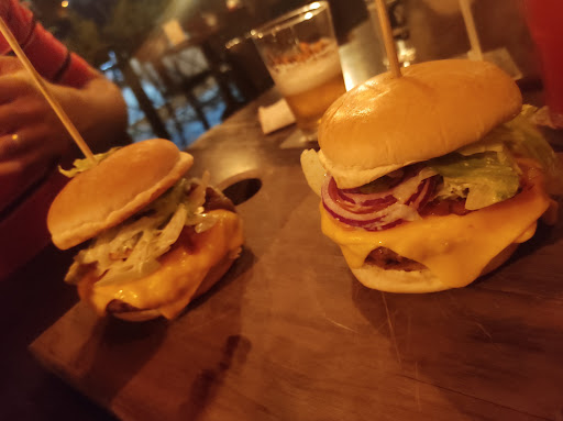 Read moreSimplesmente sensacional! Eu e minha namorada gostamos muito. Confesso que da minha parte foi uma quebra de expectativa enorme, no começo eu achei que fosse mais um lugar comum, mas realmente não foi. A começar pelo ambiente que é totalmente descolado, lembra um rock bar dos anos 90, bem aconchegante e confortável. Fomos muito bem recepcionados e atendidos do começo ao fim, a educação e a simpatia dos garçons e garçonetes foram excepcionais! As entradas são bem diferentonas, pedimos a clássica batata frita com cheddar e bacon, que estava ótima, ainda mais com um toque de salsinha, o único ponto que deixou a desejar era o sal, que ao meu gosto passou um pouco do ponto, mas nada exorbitante, outra entrada foi a "Catatau" uma porção de frango frito empanado, que é marinado na cerveja, que estava INCRÍVEL! E pra acompanhar veio um molho "blue cheese cremoso" de arasar. Para beber eu pedi um drink não alcoólico (pois estava dirigindo), cujo o nome era "cachorro louco" uma espécie de raspadinha com um toque de mel e gengibre, posso dizer que eu nunca bebi um drink sem álcool tão gostoso em toda minha vida, e falando dos drinks, vale ressaltar que a variedade é extensa, tanto dos destilados quanto dos fernantados, tem para todos os gostos, whiskey, bourbon, cerveja IPA, Pilsen, e por aí vai. Agora vem os burgers! Eu pedi o 'Bruto' um burger enorme e suculento, com uma carne angus de 200g, alface, tomate, cebola roxa, bacon e pepino doce temperado com um mix de mostardas, tudo isso num pão de brioche, um clássico mas muito bem feito, e se você for 'bom de garfo' da pra ficar satisfeito tranquilamente e para dar aquele toque a maionese de bacon que veio junto fez a total diferença no sabor, minha namorada pediu o "Bulldog inglês", um clássico cheddar melt, com cebola roxa caramelizada, mas com um toque diferenciado do picles, segundo ela foi uma sensação indescrivel a cada mordida. No final estávamos bem satisfeitos, massss... ainda cabia uma sobremesa, e essa eu posso dizer com total certeza: foi a melhor sobremesa que eu comi na minha vida! O prato em questão se chama "Dama", um sorvete artesanal com castanhas torradas e brigadeiro, tudo muito bem equilibrado sem ser enjoativo e ainda com gostinho de 'quero mais'. Agora, se você pensa em ir em casal ou com amigos, esse lugar vai te atender e com excelência. Recomendo muito e quero...