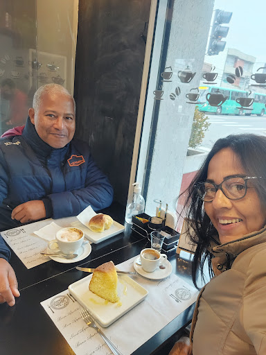 "Experiência maravilhosa! A cafeteria é acolhedora, com um ambiente super agradável e uma decoração charmosa. O atendimento foi impecável, todos muito simpáticos e atenciosos. O café estava delicioso, com aroma e sabor incrível, ótima variedade de quitutes que são muito frescos e saborosos. Dá pra ver que tudo é feito com muito carinho. Com certeza voltarei...