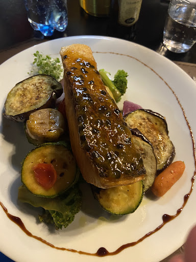 Read moreAmbiento bonito, próximo ao teatro. Atendimento bom, cortês. A comida deixa muito a desejar. De entrada pedimos uma salada, razoável. De pratos principais meu esposo pedido salmão com risoto (salmão gelado no centro, risoto fora do ponto) e eu salmão com legumes (salmão gelado no centro, pedi pra esquentar. Legumes só no vapor, sem tempero nenhum). Por fim decidi pedir um pétit gateau, só fiquei mais decepcionada. Era um bolo simples (não escorria a calda no centro) com sorvete comum uma pequena quantidade. No geral caro demais pro que oferece, mau uso dos ingredientes, em especial os vegetais. Fomos pelo primeira mesa e mesmo assim não compensa nada....