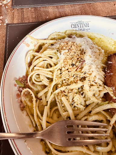 Fomos na janta de dia dos namorados para aproveitar e conhecer a cantina, local agradável, parece ter 3 ambientes para poder escolher em qual deseja ficar. O menu tinha duas opções de entrada/prato principal/sobremesa, combinamos de cada um pegar um para podermos experimentar ambas as opções, as entradas foram ravioli de gema crua (de fato estava bem mole, postei a foto) porém pra mim estava frio rsrs e bolinho arancine que era bem gostoso e veio bem quentinho. Prato principal Spaghetti de tinta de lula com frutos do mar que meu marido AMOU e quer voltar só para comer novamente esse prato rsrs e ravioli recheado de nozes e brie com mignon, que pra mim, estava dos Deuses, amo essa combinação. Sobremesa foi Banoffi e Pavlova que achei médio, não surpreendeu 😅. Resumindo, os pratos principais foram nota 10 ... a entrada dou um 7 e a sobremesa dou um 6. Ahhh e na metade da noite começou musica ao vivo ao som de Sax que eu amo ❤ Valeu a experiência, voltaremos! Ponto negativo da noite, demoraram muito para nos atender, não estava lotado, muitas mesas vazias ainda (fomos no primeiro horário) ficamos uns 10 minutos alí e para não previsar ir buscar o garçom levantei e fui até o ambiente central procurar por banheiro, para lembrarem q estávamos alí, quando voltei ainda demorou mais uns 5 minutos para então irem nos atender depois que meu marido chamou a atendente que no caso não gostou de ser solicitada. Isso de fato deu uma "baixada na energia" de fato, e notamos que as mesas ao lado já estavam sendo servidos e chegaram depois que nós, mas ok, sempre pode acontecer e dessa vez foi...