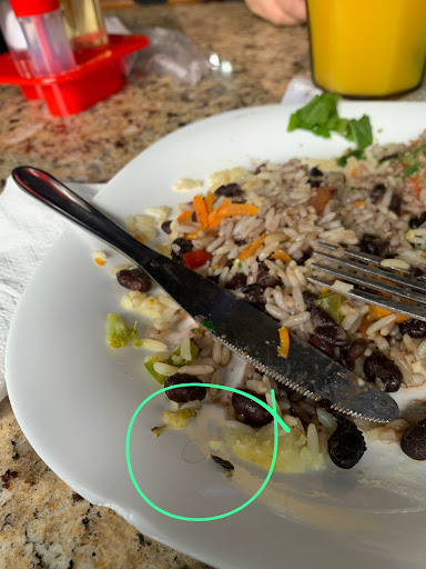 Hoje, encontrei um plastico e alguns (tinha mais de um) pelos/cabelos tipo de barba, quando achei o primeiro apenas retirei, pensei que poderia sei la ter caido do buffet, mas quando mexi mais em minha comida, tinha MAIS! E não comi, ou seja, meu prato ficou cheio de comida e alguns cabelos, eu não comi.