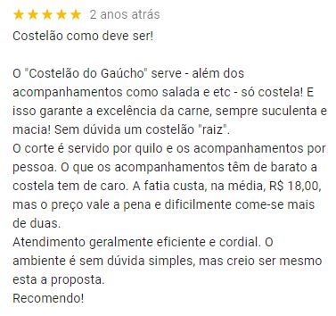 Read moreSe você procura a melhor costela de Curitiba, o Costelão do Gaúcho da Mateus Leme é parada obrigatória! A costela é simplesmente perfeita – sempre macia, suculenta e no ponto certo, com aquele sabor autêntico de churrasco bem-feito.