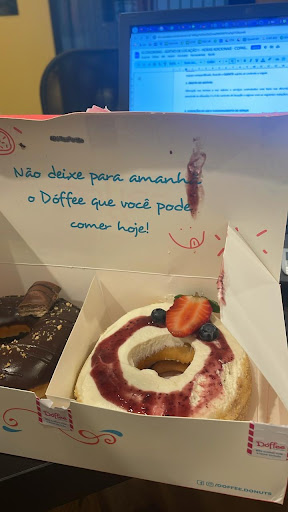Read morePrimeiro, péssimo atendimento da atendente do caixa. Estive ontem com meu marido e a atendente mal olhou na nossa cara, estava com um celular na mão mexendo e no meu atendimento ela olhava do computador e para o celular, além da falta de simpatia, realmente não olhava pra nós quando falávamos. Parecia que eu tava atrapalhando. Eu entendo que o celular pode ser o da empresa e que ela estava fazendo algo relacionado ao trabalho, mas como eu estava ali diante dela falando com ela, o certo seria ela deixar por um momento o celular de lado e me atender olhando para mim até encerrar o atendimento, e aí ela voltava a fazer o que estava fazendo. Ou pelo menos pedir só um minuto pois precisava terminar de fazer algo importante que estava fazendo naquele momento. Segundo, chegamos as 18:30 e tentamos pedir os donnuts salgados, mas ela informou que não dava mais para fazer porque encerrava as 19hrs a cozinha. Mas pera aí, eu cheguei as 18:30, porque não dava pra fazer sendo que tinha meia hora? Entendo que pode ser que encerrem antes do horário tipo uns 10 minutos antes para ir organizando e limpando as coisas, mas meia hora antes? Como o atendimento foi Péssimo, não quis argumentar e fui embora. Nunca avaliei ninguém com 1 estrela, mas fiquei tão chateada porque eu realmente fui empolgada na loja, fazia um tempo que não pedia os donuts da doffe, e sai tão indignada que precisei vim aqui comentar pra ver se melhoram o atendimento. Os donuts são deliciosos, a loja sempre limpa e impecável, a divulgação excelente tb, mas pecou no...