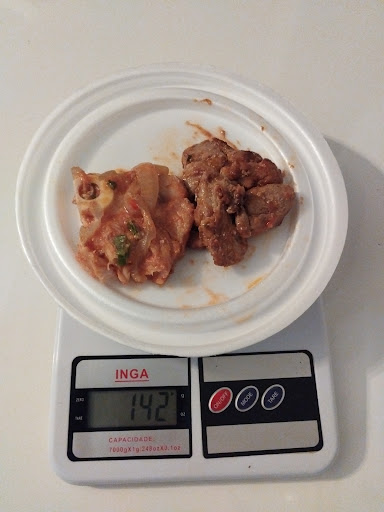 Ao chegar lá, vi que a marmita custa 16 reais e o buffet livre por volta de 30 reais. Foram-me entregues duas embalagens redondas de isopor. A pequena continha salada e maionese. A grande, feijoada, farofa, arroz, bastante macarrão, strogonoff de frango e batata palha. Uma marmita comum, cheia de arroz e macarrão não custa 45 reais nem em bairro nobre de São Paulo. A pena é não ter visto a avaliação do Google antes de fazer o pedido. No Food to Save...
