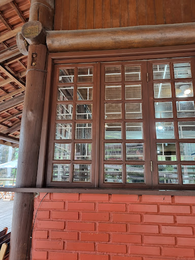 Teve uma outra situação também, que foi eu ter me machucado o braço nos parafusos pregados em um dos troncos ali na área das mesas. Passando para ir ao banheiro, não vi esses parafusos (a cor deles é bem próxima à cor do tronco), e acabou que esbarrei.