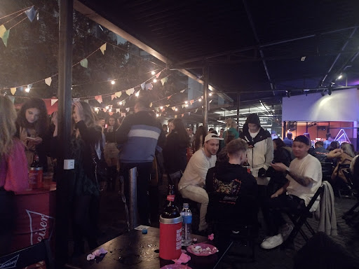 Read moreMeio bar, meio balada. É um bar universitário sem frescura, num ambiente descolado, com uma área externa bacana, poucas mesas e cadeiras. Tem música (funk, pagode, eletrônica) e tem telão transmitindo esportes. Tem gente conversando, tem gente dançando e tem beijando na boca. Costuma estar cheio e agitado, o que não é um problema pra mim, apenas uma observação.