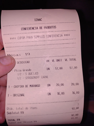 Read moreSaímos da região do Fazendinha até o Sítio Cercado, pra comemorar e passar uma noite agradável. Mas nossa experiência não foi nada boa, a primeira funcionária que nos atendeu foi de uma má vontade, já a segunda foi muito atenciosa e trouxe muito rápido nossos pedidos. Mas quando a pizza chegou veio a grande decepção, pedimos uma pizza de strogonoff de carne e sinceramente veio tudo menos carne. Parecia mais de batata palha pq foi o que mais tinha, a pizza grande nós custou o equivalente a R$57, mais parecia as pizzas de R$ 15 que vendem perto de casa. Fiquei decepcionada pois não e só pelo valor agregado, mas pela qualidade do produto ofertado....