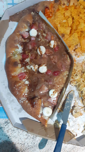 Esse foi um "golpe" que tomei só uma vez. A massa da pizza é igual á um pão. Ingredientes de baixíssima qualidade. A de calabresa que pedi estava mais para cachorro quente, aqueles bem completos, tinha frango, cebola, milho e mais umas coisas incompreensíveis no meio. A de camarão veio FORRADA de cebola crua por baixo, podemos começar pelo fato de que pizza de camarão não vai cebola, o cream cheese que colocaram por cima parecia mais uma maionese hidrogenada, isso sem contar que na manhã seguinte as cebolas já estavam azedas. Fui comer um pedaço da de camarão e cuspi, de tão azeda que estava. A carne da de nachos estava com aquele gosto de carne que fica congelada por meses. Isso sem contar o palmito, que tem gosto de tudo menos palmito. E vale dar ênfase para a questão da cebola, que na manhã seguinte, além de gosto azedo, já estava começando a cheirar forte. Além de todos esses defeitos, foi caro. Eu jamais na minha vida recomendarei esse...